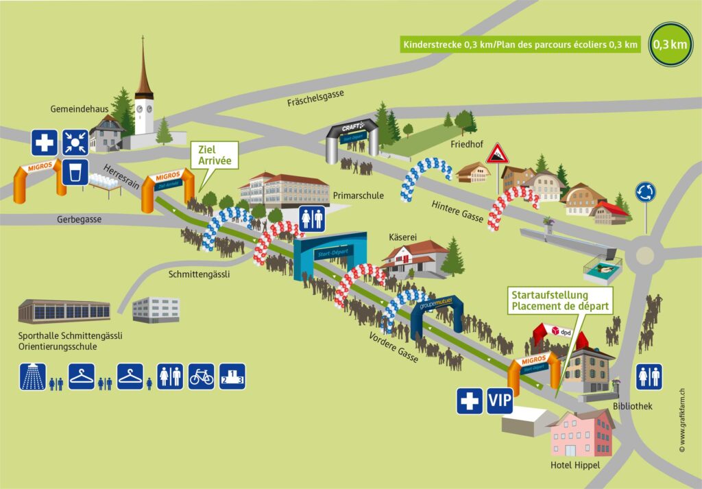 Die kürzeste Strecke des Kerzerslaufs ist mitunter auch eine der meistbejubelten. Wenn die Kleinsten mit ihren doch eher kurzen Beinchen die 300 Meter inmitten des Dorfkerns von Kerzers in Angriff nehmen, schmilzt wohl noch dem Hartgesottensten das Herz und man kann die Laufzwerge einfach nur anfeuern und ihnen zuklatschen. Ein heimlicher Glücksmoment am Kerzerslauf, der einfach allen ein zufriedenes Lächeln ins Gesicht zaubert!