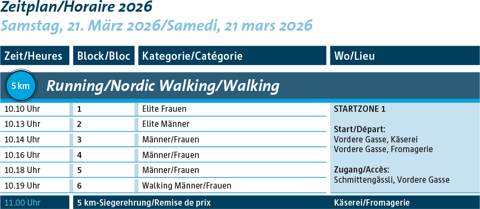 Eigentlich könnte man auch schreiben: 5 km – kurz und schmerzlos. Je nach Ambitionen wirst du allerdings auch über die Kurzstrecke von 5 km gefordert sein. Für alle, die sich nach dem Wintertraining noch nicht an 10 km oder 15 km ranwagen, ist das der ideale Saisoneinstieg. Der Sommer kann kommen!
